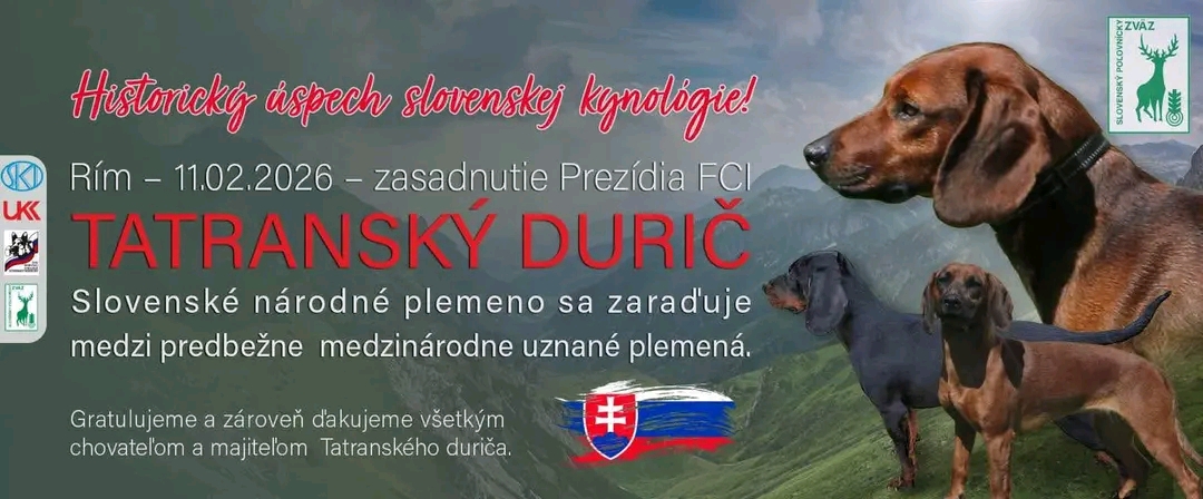 Tatranský honič byl včera zařazen mezi mezinárodně uznaná plemena FCI. Gratulujeme všem majitelům a zvláště těm v ČR, kterým se tím zásadně mění k lepšímu možnost využití v lovecké kynologii u nás.